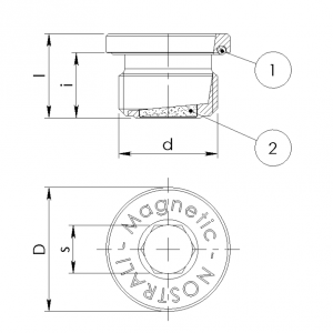 Bujão magnético de cabeça cilíndrica e sextavada de encaixe em aço galvanizado com OR vedante no cabeçote. Nesta versão o magneto é inteiramente encaixado na rolha. Graças a esta característica o risco de colisão com eventuais movimentos rotatórios é reduzido. O magneto permanente atira e retém as partículas de ferro evitando a circulação dessas no sistema de lubrificação ou hidráulico.