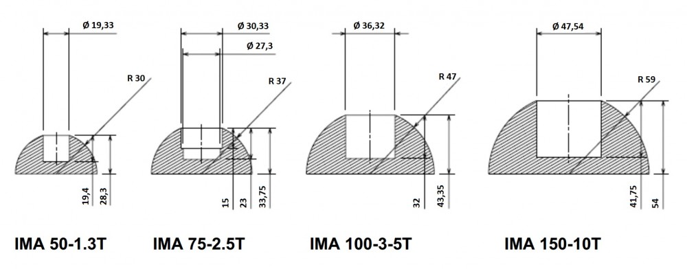 Temos 4 fixações usuais segundo as necessidades de peso das peças que iremos manipular.