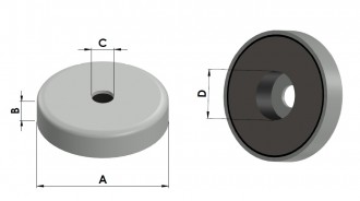 Código | A (mm) | B (mm) | C (mm) | D (mm) | Peso (g) | Força (kg) |