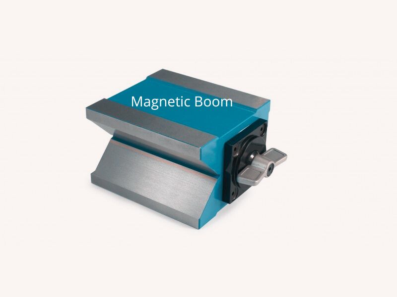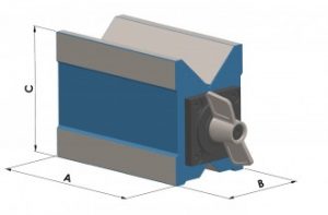 Este suporte tem cerca de 3 lados magnéticos, 2 dos quais com um “V” de 90 º. São muito úteis para a fixação de peças irregulares e cilíndricas, e magnetizam-se e desmagnetizam-se girando a alavanca 90º. São completamente à prova de água e óleos, podendo-se trabalhar submerso neles (por exemplo: máquinas de electro corrosão.